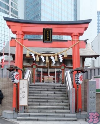イタリア街の西端には、こぢんまりとした「日比谷神社」がある。この神社の鳥居の向こうには、汐留の高層ビル群が聳え立つ。